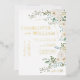 Ce Faire-part de mariage présente une belle aquarelle design floral avec des roses blanches, des fleurs et une végétation délicate, avec la typographie calligraphie moderne dans REAL GOLD FOIL. Découvrez nos collections Mariages pour trouver les articles parfaits pour rendre votre journée spéciale encore plus spéciale, et impressionnez vos invités avec ce magnifique design.