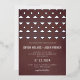 Ce faire-part de mariage est doté d'un véritable motif de style Aztec à feuille surélevée avec une typographie facile à customiser dans une disposition simple et propre, le tout contre un arrière - plan à texture subtile de rouge bordeaux profond. Personnalisez cette invitation en changeant la couleur de l'arrière - plan pour répondre à vos besoins et créez une invitation unique à l'événement avec le flair du Boho du Sud-Ouest du moment.