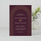 Invitations de mariage élégantes avec une arche métallique doublée encadrant les détails de votre cérémonie. Rouge foncé avec feuille or.