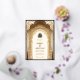 Étonnez vos invités avec cette élégante invitation de mariage islamique présentant une belle arche avec des détails complexes et des éléments de feuille d'or véritable. Ajoutez simplement vos coordonnées sur ce modèle facile à utiliser pour en faire une invitation unique.