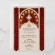Évoquez la splendeur d'un mariage royal avec cette somptueuse invitation, qui présente la grandeur du design islamique à travers un motif en dentelle orné, recouvert d'accents dorés chatoyants. L'arrière - plan de rubis profond contraste splendide avec les détails crème luxueux, créant un festin visuel d'élégance et de tradition. L'entrée de l'invitation présente une grande arcade, faisant écho à la silhouette d'une architecture islamique intemporelle, ornée de détails mariages dans une police sophistiquée. Le dos est tout aussi somptueux, avec un motif en dentelle en rubis et crème, offrant une toile exquise pour des détails mariages supplémentaires. Cette invitation est une faire-part appropriée pour une union qui célèbre l'amour, le patrimoine et l'art de la culture islamique.
