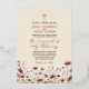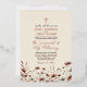 Invitation vos amis et votre famille à partager votre joie en célébrant votre mariage avec cette belle invitation en feuille de papier. Le design boho chic rustique présente une bordure de fleurs sauvages délicats dans des tons terre d'argile terre cuite et de rose poussiéreux sur un arrière - plan couleur crème neutre ou taupe. Conçu pour une cérémonie catholique, il y a une croix ou un crucifix en haut et le texte invitations vos invités à se joindre à vous pour une messe nuptiale vous unissant dans le sacrement du mariage saint. La croix, les noms et le texte en surbrillance sont imprimés en feuille d'or rose pressée, ce qui rend cette invitation d'autant plus élégante. L'arrière a de l'espace pour votre photo, ou si vous préférez, vous pouvez utiliser l'outil de design pour supprimer la photo qui révélera un bouquet des mêmes fleurs sauvages sur un mocha ou un arrière - plan de couleur terre.