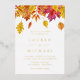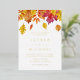Invités Invitations avec ce faire-part de mariage d'automne. Il dispose d'une guirlande aquarelle de feuilles dans les tons d'automne avec un motif assorti. Personnalisez en ajoutant des noms, des dates, des heures et d'autres détails. Ce faire-part de mariage en feuille d'or est parfait pour les mariages de automne. Des éléments correspondants sont disponibles.