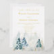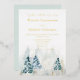 Faire-part de mariage à huile avec de belles aquarelles rustiques de montagne avec de beaux arbres à feuillage persistant dans un bleu clair et vert. Avec la typographie que vous pouvez facilement personnaliser. Idéal pour un mariage des merveilles hivernales.