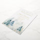 Faire-part de mariage à huile avec de belles aquarelles rustiques de montagne avec de beaux arbres à feuillage persistant dans un bleu clair et vert. Avec la typographie que vous pouvez facilement personnaliser. Idéal pour un mariage des merveilles hivernales. Neige tombant sur le dos de la carte avec détails ornementaux.