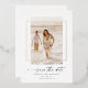 Un design moderne de Save The Date avec une fine police de calligraphie tendance comprenant un cadre en feuille d'or véritable sur votre superbe photo. Personnalisez facilement vos informations personnelles ainsi que vos photos sur le recto et le verso de la carte.