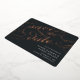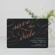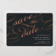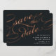 Elégant mariage enregistrer les cartes de date dans riche charbon de bois noir fonctionnalité "enregistrer la date" dans luxueux rose feuille d'or script lettering pour un look audacieux et inoubliable. Personnalisez avec vos détails mariages en lettres blanches classiques et ajoutez des informations supplémentaires au dos.