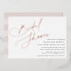 Une invitation simple et élégante à la douche nuptiale pour mariées modernes présente "douche nuptiale" en haut à gauche dans la typographie rose chic feuille d'or. Personnalisez avec vos détails de douche nuptiale. Un design moderne de douche nuptiale en rose et gris chic.