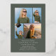 Modern graduation announcement for your class of 2026 grad features a single vertical/portrait oriented photo, with "grad" along the bottom in gold foil handwritten script lettering. The graduate's name and school appear along the bottom. Add your party invitation details to the back, along with 4 additional photos in a collage layout on a forest green background.