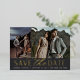 Une carte de date moderne permet de sauvegarder la carte de date conçue pour accueillir deux photos fiançailles (une verticale et une horizontale, alignées côte à côte). "Enregistrer la date" apparaît sous vos photos en bloc de feuille d'or et en lettres de script, ainsi que vos noms, date mariage et emplacement du mariage. Personnalisez le dos avec des détails supplémentaires, comme votre site Web mariage.