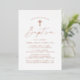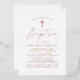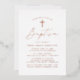 Les invitations au baptême simples comprennent un script de calligraphie en feuille d'or rose avec un arrière - plan blanc pour un design parfait pour les baptêmes de bébé modernes. Personnalisez les élégantes invitations au baptême avec le nom de votre enfant et les détails de l'événement religieux ci-dessous. L'arrière de l'invitation de baptême en feuille d'or rose offre de l'espace pour des textes et des photos supplémentaires.