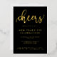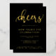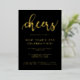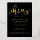 Un design simple mais frappant pour les amis invitations et la famille à sonner dans le Nouvel An. Cette conception comporte le mot "Cheers" en feuille d'or en lettres de style écriture de police contre un arrière - plan noir chic. Personnalisez avec vos détails de fête en feuille d'or. D'autres articles pour accessoiriser votre fête sont disponibles dans cette conception.