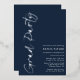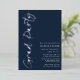 Il s'agit d'une invitation minimaliste et moderne à la remise des diplômes. Il s'agit d'une écriture manuscrite simple et élégante en bleu et blanc classique avec "Grad Party" en papier argenté. Veuillez contacter le concepteur pour toute question concernant ce design.