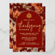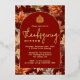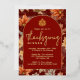 Une invitation au dîner Thanksgiving avec d'élégantes feuilles d'automne et des accents de feuille d'or. "Thanksgiving Dinner" est écrit dans une police manuscrite contemporaine, avec tous les détails de l'événement affichés en évidence dans le centre contre une arche design. L'arrière - plan est décoré de couleurs automnales et de feuille, ce qui lui donne une ambiance festive. Le dos de l'invitation présente un automne complémentaire laisse motif.