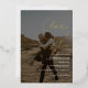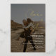 Une invitation de mariage moderne, chic et élégante avec des noms personnalisés avec une calligraphie manuscrite en noir et blanc et en feuille d'or véritable, avec une couverture noire et 2 photos,. Tous les textes, noms et couleurs arrière - plans sont personnalisables. Une invitation simple et minimaliste.