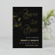 Surprenez vos amis et votre famille avec ces cartes uniques de style gothique Save the Date, avec script rétro en feuille d'or, texte personnalisé & photo. Ajoutez facilement vos propres détails en cliquant sur l'option "personnaliser".