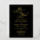 Célébrez votre journée spéciale avec cette carte d'invitation de mariage élégante. Avec "Mr and Mrs" en calligraphie romantique en feuille d'or sur noir, ce design classique dégage un charme et une sophistication intemporels. L'avant de la carte présente vos noms et détails mariages dans un style chic et minimaliste, parfait pour les couples modernes qui apprécient une touche d'élégance sobre.
