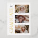 Cette faire-part de remise de diplômes élégante est aussi une invitation à une fête de remise de diplômes. L'avant présente le mot "gradué" dans la couleur de feuille de votre choix. Il dispose également d'espace pour trois photos ainsi que le nom du diplômé, l'année de classe et l'école. Le dos de la carte offre de l'espace pour une autre photo ainsi que des détails pour votre fête de remise de diplômes.