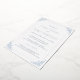 Créez une invitation aussi intemporelle que votre amour avec ces chic Shabby chic bleu et blanc ultra élégants qui allient une élégance simple à une esthétique côtière chic et ancienne. Le design polyvalent est parfait pour le couple qui crée un thème romantique avec une combinaison classique de script de calligraphie et de typographie, bleu et blanc avec feuille d'argent et un élément graphique vintage légèrement rétro. Conçu par Simple Desert Designs Studio. Faites-nous un message pour des couleurs plus customisées pour correspondre à votre teinte ou à votre jeu de couleurs spécifique.