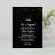 Cette Shhh It's a Surprise Gold Confetti sur l'invitation Black Bachelorette Party en feuille d'or est parfait pour célébrer la future mariée. Le design présente d'élégants confettis en feuille d'or sur un arrière - plan noir avec une calligraphie blanche et classe.