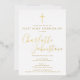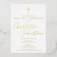 Une élégante première invitation de communion sainte avec un vrai crucifix en feuille et un nom de style signature avec une élégante typographie en or imprimé. Conçu par Thisisnotme©
