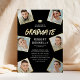 Invitations modernes de remise de diplômes de films réels avec un arrière - plan noir élégant qui peut être changé à n'importe quelle couleur, 6 photos du diplômé, et un modèle de texte simple qui est facile à personnaliser.