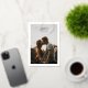 A beautiful save the date card with a simple white border and elegant typography. Features two large, portrait orientation photos, showcasing your special moments shared together. The oversized calligraphy script that bleeds over the photo and border adds a touch of drama and romance, while the minimal layout ensures a stylish and modern aesthetic. Perfect for couples seeking a trendy yet classic wedding announcement. Your guests cherish this unique two-sided design and it will set the tone for your beautiful wedding day.