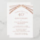 Créez une invitation personnalisée pour la fête du 40e anniversaire du mariage avec cette carte en forme de véritable feuille d'arc moderne unique. Personnalisez cette invitation unique et élégante d'anniversaire avec les noms du couple, l'emplacement de l'événement, la date de la fête et le texte plus modifiable selon les besoins. J'ai créé pour vous ce design original et élégant d'arche en feuille d'or rose. C'est un vrai papier rose. La simple typographie contemporaine peut être éditée. Un script minimaliste et élégant qui dit "40ème anniversaire" peut être personnalisé à n'importe quel numéro pour un 25ème ou 50ème anniversaire ou une autre année d'anniversaire si nécessaire. L'avant de la carte est un vrai papier d'aluminium, sur l'arrière est vide. Voir ma collection de fêtes du 40e anniversaire de ruby mariage pour apparier décoration et faveurs de fêtes d'anniversaire.