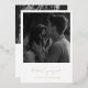 Invitation de la partie fiançale en feuille d'or moderne avec un design minimaliste simple en noir et blanc classique. En dessous de votre photo est "Nous sommes engagés" avec le mot "engagés" dans une élégante typographie de script. Le dos a une deuxième photo avec les détails de votre événement. VEUILLEZ NOTER : Seul le texte à l'avant est en feuille d'or.