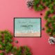 Invitation de mariage simple et moderne à la plage d'été. Marais et sable modernes avec une pointe d'art bleu