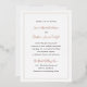 Faire-part de mariage simple avec vos noms et votre lieu dans un script élégant avec vos détails de l'événement entouré d'une bordure. Vos noms, nom du lieu et frontière sont en papier doré rose. Le dos est rose roux. Un Faire-part de mariage de style traditionnel, parfait pour un mariage formel au printemps ou en été.
