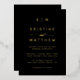 Ce faire-part de mariage simple mais élégant en feuille d'or présente un script de calligraphie moderne avec monogramme sur un arrière - plan noir. Personnalisez avec tous vos détails mariages. Conçu par Susan Coffey.