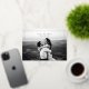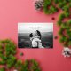 Un simple modèle de save the date avec une photo de mariage en débordement avec une fine bordure en foil et un texte editable sur le devant. Le dos comporte un site web de mariage et un espace vide pour des photos personnelles supplémentaires. Cliquez sur le bouton modifier pour personnaliser ce design.