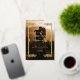 Modern stylish elegant photo wedding invitation with gold dust on with a gold ink pour effect (the gold is a digital effect, not real foil) and modern calligraphy. Classy and elegant, simple and modern invitation.