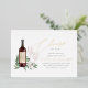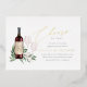Vous organisez une soirée sur le thème du vin ou une soirée de dégustation de vin, ou vous organisez un grand événement dans une cave ou un vignoble ? Invitation vos invités avec nos élégantes invitations à des soirées de dégustation de vin, avec une bouteille de vin rouge bordeaux et deux verres à vin et orné de feuilles d'eucalyptus vert aquarelle et feuillage. "Cheers to Love" apparaît dans le script de calligraphie de feuille d'or chic en lettres. Pour une touche finale, personnalisez le étiquette de bouteille de vin avec les initiales du couple. Idéal pour des fêtes fiançailles dans le vignoble, la cave ou le vignoble.