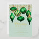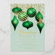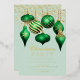 Cette élégante invitation de fête de vacances présente de beaux ornements de Noël en vert et or avec des lampes à cordes d'or sur un arrière - plan vert tendre. Vous pouvez facilement modifier le texte de feuille d'or en cliquant sur "Personnaliser". Idéal pour les fêtes de famille ou d'affaires.