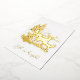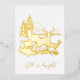 Véritable feuille d'or invitation Noël fête. Le texte personnalisé se trouve à l'arrière de la carte. L'avant est le vrai foil de la forêt scène cerfs et pins et All est texte lumineux (également personnalisé).