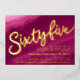 Soixante-cinq 65ème anniversaire de fête art audacieux brosse laver dans un arrière - plan rose rouge profond avec un texte de feuille or ou votre propre invitation couleur feuille. Personnalisez cette 65ème anniversaire script art jalon invitation anniversaire avec vos propres détails de fête d'anniversaire, et votre propre photo au verso. D'autres années couleurs et articles correspondants sont disponibles. © Design original par Sarah Trett pour www.mylittleeden.com sur Zazzle.