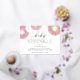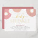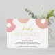 Les invitations mignonnes à saupoudrer de bébé comportent un trio de beignets dans les tons roses, surmonté d'asperges en feuille d'or. "Baby Sprinkle" apparaît en papier doré, avec les détails de votre événement sous.