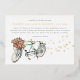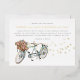 Belle et romantique faire-part de mariage avec feuille dorée brillante, avec un vélo en tandem vintage aquarelle et un panier de fleurs.