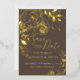 Cette conception de faire-part "Save the Date" présente des pivoines et du feuillage en feuille d'or dans un style de dessin moderne et minimal. La police de feuille d'or correspondante comporte des sérifs classiques et une typographie cursive manuscrite. Le dos est vierge avec beaucoup de place pour ajouter du texte supplémentaire ou une photo du couple.