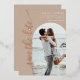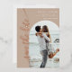 Cette carte de date minimaliste et moderne présente un cadre photo en arc de cercle élégant et d'élégants motifs en feuille dans votre choix d'or, d'or rose ou d'argent. Le design épuré permet à votre photo de prendre le centre de la scène, tandis que le script élégant et le papier d'aluminium ajoutent une touche de sophistication. L'arrière - plan taupe peut être changé en n'importe quelle couleur pour correspondre à votre mariage. Idéal pour tous ceux qui recherchent une carte de datation chic et design.