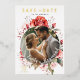 This Terracotta Burgundy Blush Floral Wedding Photo Save the Date Foil Invitation combines personal sentiment with high-end luxury, featuring a stunning interplay of warm botanical art and shimmering metallic accents.