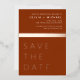 Mariage Elegant Terracotta - Burnt Orange et Rose Gold Enregistrer les cartes de dates. Les cartes Save the Date contiennent une typographie de script moderne, lettrée à la main, qui sont élégantes, simples et modernes à utiliser après que vous minimaliste simple célébration de mariage.