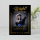 Touche d'or Éclairez votre avenir. Utilisez cette invitation de feuille de graduation d'or pour marquer une occasion importante! Cette invitation a une photo pleine longueur du diplômé encadrée de lignes ondulées d'or fantaisie et brillantes, et il a un design d'inspiration or vibrante. En ajoutant une touche personnelle, le mot "brillant" est imprimé dans un script sophistiqué avec un effet or. La façon idéale de demander à des amis et à la famille de se joindre à la fête est de fournir toutes les informations sur la cérémonie de remise des diplômes imminente à l'arrière de l'invitation. Ce design animé et contemporain est une merveilleuse représentation du brillant avenir ! S'il vous plaît : Pour offrir de l'aide sur la modification ou la personnalisation du plan, modifier la couleur, redimensionner, échanger le plan sur un autre élément ou sur le hasard que vous souhaitez planifier des choses, contactez le créateur Un certain temps récemment Demander au moyen du MESSAGE Conversation Zazzle