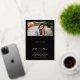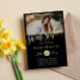 Invitation en sweet sixteen de feuille d'or et noir personnalisée avec une photo de la fille d'anniversaire. Admirez l'invitation à la fête de 16 ans avec une photo et des détails en feuille d'or.