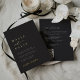 Une belle faire-part de mariage minimaliste à base de typographie avec vos noms en lettres d'or frappantes, jointe avec des caractères de script de calligraphie moderne en lettres d'accent. Personnalisez avec vos détails mariages en dessous, alignés à gauche. Ajoutez des détails supplémentaires et un code QR facultatif à l'arrière. Notre colorway de cendre fait une déclaration classique avec du papier blanc et de l'or sur un arrière - plan non noir doux.