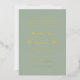 Invitations de mariage traditionnelles avec un design simple et intemporel avec le nom de la mariée et du marié dans une calligraphie élégante. Tout le texte sur le devant est en véritable feuille d'or sur un arrière - plan vert sage. Cette Faire-part de mariage de luxe en feuille d'or de style classique est parfaite pour un mariage formel.