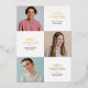 Faites passer votre diplôme spécial pour 3 diplômés avec ces vraies invitations de diplôme en joint feuille! Fêtez vos trois élèves avec un modèle de célébration triple moderne et intemporel, simple à customiser ! Créez les invitations de graduation parfaits avec un arrière - plan blanc qui peut facilement être changé à n'importe quelle couleur que vous désirez. Présentez les photos de vos diplômés et présentez fièrement leurs réalisations. Parfait pour une triple célébration, nos modèles uniques et nos modèles faciles à customiser feront de cette occasion un souvenir durable pour les années à venir. Vous pouvez ajuster le libellé à l'arrière de l'invitation pour en faire un faire-part de graduation.
