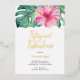 Des invitations de calligraphie personnalisées tropicales mais élégantes encadrent vos détails de l'événement avec une bordure de confettis d'or simple, une fleur d'hibiscus rose et une verdure botanique sur un arrière - plan blanc immaculé. Les détails de votre événement sont définis dans une simple sans serif et type de script en feuille d'or véritable. Idéal pour une soirée 50 et fabuleuse 50e anniversaire avec un thème luau. OEuvre d'aquarelle et design de Victoria Grigaliunas de Do Tell A Belle. Pour voir plus élégante feuille estampillée fab invitations d'anniversaire comme cette visite www.zazzle.com/dotellabelle